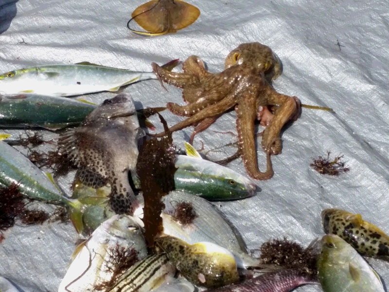 昨年と同じく南知多にて。家族で力を合わせ、今年も大漁です。台風の影響で波が高く、海水浴はできませんでしたが、終了後は、まるはリゾートでランチを楽しみました。